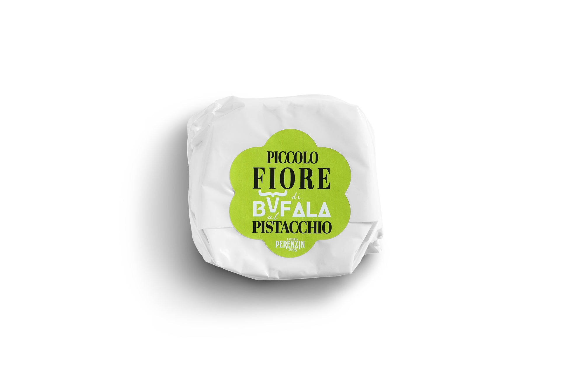 Piccolo Fiore di Bufala al Pistacchio to ekskluzywny, miękki ser pleśniowy z pasteryzowanego mleka bawolego, nadziewany kremem pistacjowym i siekanymi pistacjami. Ma cylindryczny kształt, delikatną białą, jadalną skórkę pokrytą wykwitami pleśni oraz kremowe wnętrze z wyraźnie zaznaczonym zielonym żyłkowaniem pistacji. W smaku jest przyjemnie mleczny, z lekką kwaskowatością rozwijającą się w trakcie dojrzewania i wyrafinowanymi, orzechowymi nutami pistacjowymi. To ser stworzony do powolnej degustacji.