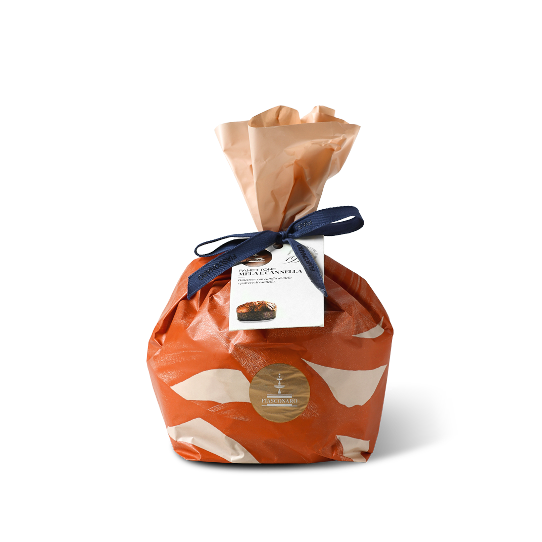 Klasyczne włoskie panettone z Sycylii od Fiasconaro – lekkie, puszyste ciasto drożdżowe z kandyzowanymi cytrusami, bez rodzynek, z dodatkiem szafranu z Sycylii. Ręcznie pakowane w ozdobny papier, idealne jako świąteczny wypiek na stół lub elegancki prezent. Aromatyczne, maślane, z wyczuwalnymi nutami owoców i delikatną, ciepłą nutą szafranu.